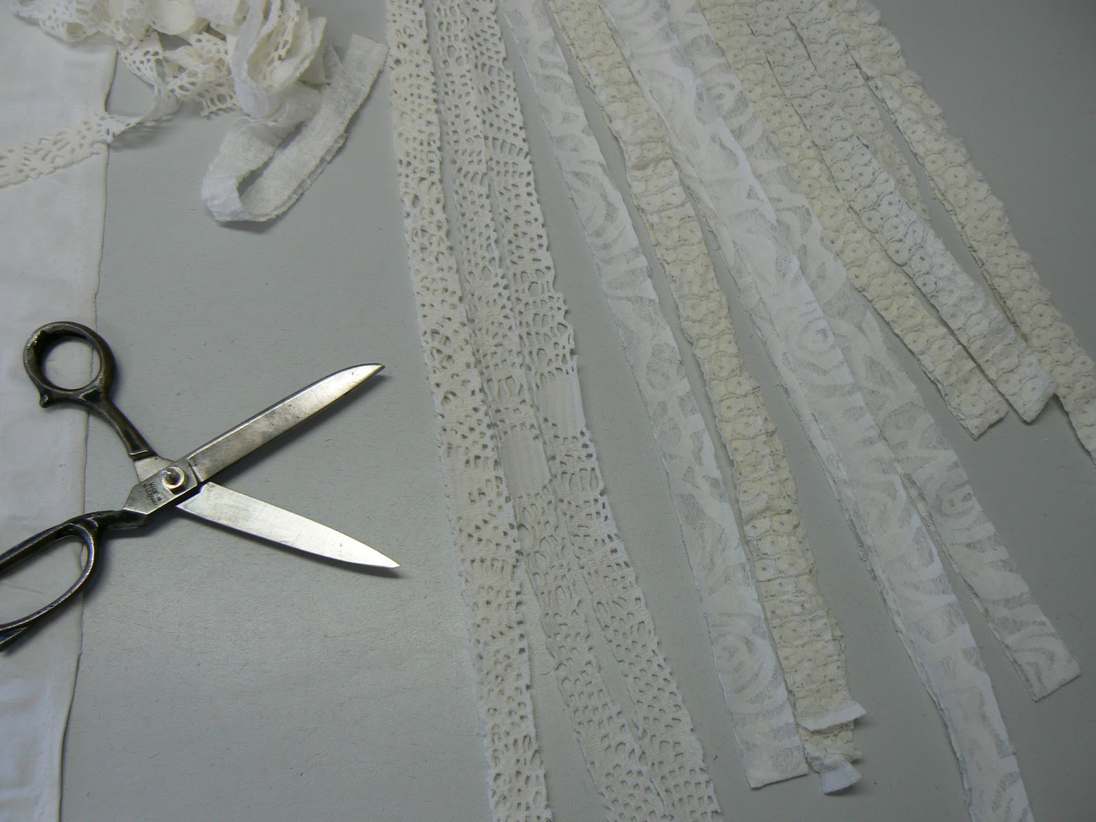 Stoffe in ca.1,5cm breite Streifen schneiden.