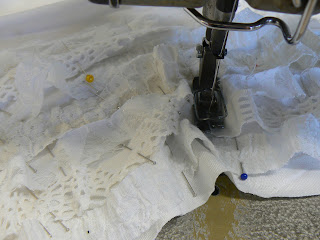 Mit der Nähmaschine die Streifen quer feststeppen.