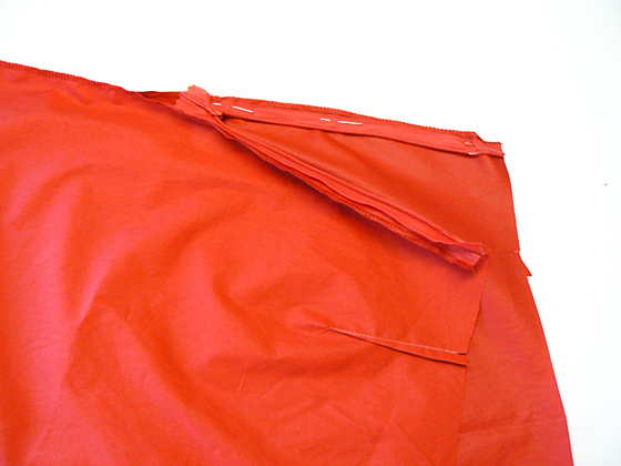 Nahtzugabe auseinander bügeln und danach den Reißverschlussbereich wieder auftrennen. Verdeckten Nahtreißverschluss einarbeiten.