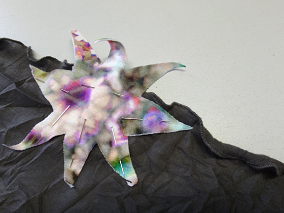 Sterne sorgfältig auf das Tuch stecken.