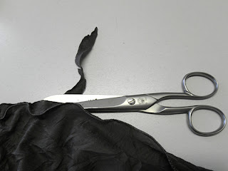 Anschließend die Nahtzugabe hinten vorsichtig mit einer scharfen Schere wegschneiden.