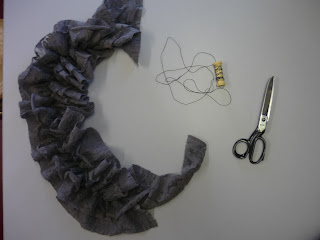 Den Jerseystreifen 2cm breit zuschneiden, Länge nach Halsausschnitt-, Ärmel-,und Saumumfang bemessen.