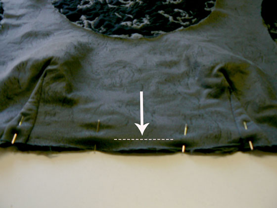 Saumkante, Halsausschnitt und Armlöcher versäubern, umbügeln und mit der Zwillingsnadel absteppen.